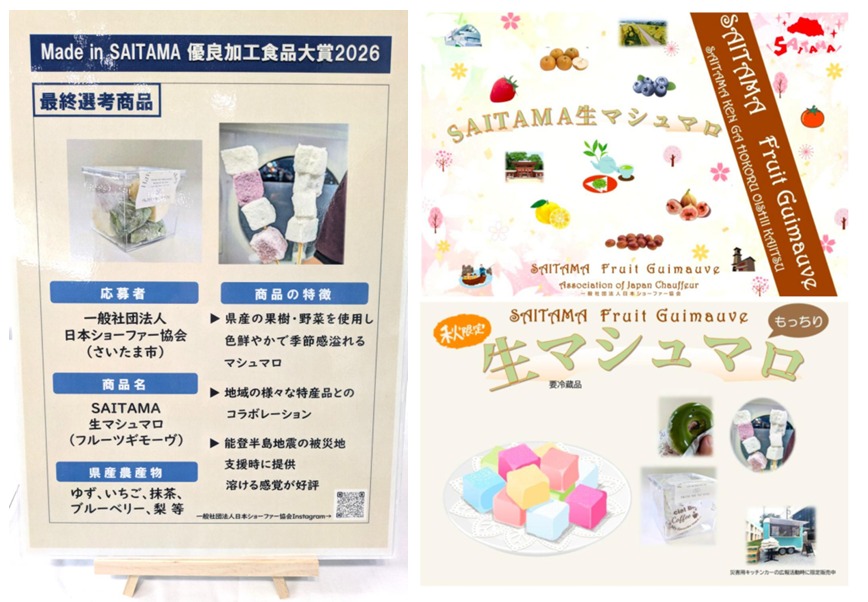 ●現在ウェブサイトを更新中です。最新情報は「お知らせ」をご覧ください。 secretary サポート事業 security guard secretary 役員秘書/秘書育成 ※第1回受賞団体 ウエルシア薬局株式会社・株式会社サイサン・株式会社埼玉りそな銀行・積水ハウス株式会社 & 秘書兼セキュリティ対応移動責任者 社会貢献活動 一般社団法人日本ショーファー協会・株式会社福島食品・株式会社武蔵野銀行 (7団体) executive chauffeur 役員車運行管理 これまでの助成・補助事業 tour concierge 人材育成/人事課題解決 旅行秘書 nursing trip ケア旅行 chauffeured care 民間救急車/生活介助 recruitment agency 人材紹介 human resources development 企業評価/リファレンスチェック corporate evaluate/refarence check ●災害用キッチンカーデザインの表彰式を行いました (令和7年3月) ●令和7年度の社会貢献活動は、財団等の助成・補助を受け行っています 埼 玉 県 知 事 表 彰 第1回SAITAMA社会貢献賞受賞 車両を使用した地域貢献活動に対し、令和5年2月17日大野元裕埼玉県知事 よりSAITAMA社会貢献賞をいただきました。 ・ 独自の検定制度による交通安全教育など独自性のある取組を実施している 受賞理由 ・ ジャストインタイム方式による効果的な食料支援を実施している ・ 所有車両を使用した防犯・見守り活動 ― 良好な治安は最大の社会福祉 ― ・ くるま検定等の交通安全教育 ― 低年齢からの意識付け ― ・ 民間救急車等を活用した無償の食料配送 ― 孤立を生まない地域社会の実現 ― 表彰 : さいたま市長賞 ・ さいたま市教育長賞 ・ あらい太朗さんによる表彰状 後援 : さいたま市 ・ さいたま市教育委員会 関係者で「生マシュマロ・ギモーヴ協会」を設立しました(令和7年8月) 大野埼玉県知事より協力証をいただきました(令和7年11月) 弊会の「SAITAMA生マシュマロ」が選ばれました (令和7年11月) 創設しました。弊会が事務局機能を担当します (令和7年7月) ●埼玉県庁オープンデーへの災害用キッチンカー出展および寄付により ●Made in SAITAMA 優良加工食品大賞2026の最終選考商品に ●災害時の災害食・介護食としても有益なマシュマロの普及・啓発を目的に ●さいたま市内の企業・団体で社会貢献活動の実施団体「まちぽかネット」を ●災害用キッチンカーが内閣府の制度に登録されました (令和7年7月) ●第2回災害用キッチンカーコンテストを行います さいたま市教育委員会 後援 (令和7年11月) 主な活動内容 ●お知らせ Copyright 2024 Association of Japan Chauffeur サイトは著作権により保護されています。転載・無断転用はご遠慮ください。